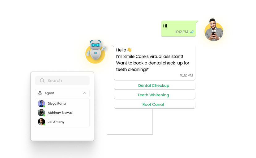 Automate FAQs, product queries, lead qualification, and appointment bookings in minutes.