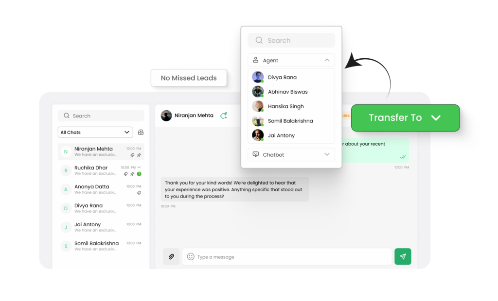 Manage all customer chats from one place, across teams, agents, and departments.